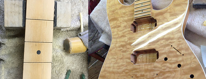 ピックアップの交換や、ボリュームやスイッチ、配線などボディ部に関してのメンテナンス・カスタマイズが可能です。弦高調整など、プレイヤーの弾きやすいセッティングに調整することも可能です。