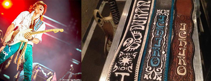 ギターストラップの作成販売も可能です。ミュージシャンから絶大なる支持を獲得しているレザー製。デザインもお任せください。プロミュージシャン仕様の抜群の安定感が魅力なギターストラップを提供します。 職人がひとつひとつをハンドメイドにて製作し、あなただけのオリジナルストラップが完成します。詳しくはお問合せください。